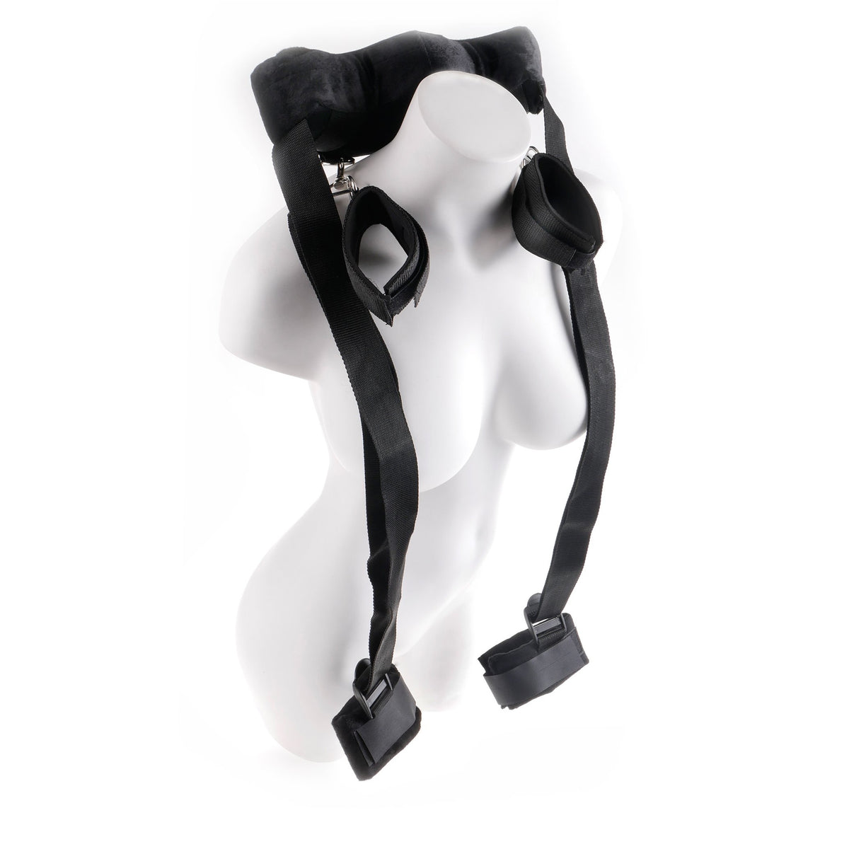 Let your fantasies come true or be hightened with this amazing position master with cuffs. Ever get cramps in your legs or arms while you are in the mist of enjoyment? The neck harness has a soft pillow for comfort. Once you get into a nice rhythm, you can cuff your partner or let your partner cuff you. Leg cuffs are adjustable and made with the same soft material for added comfort.